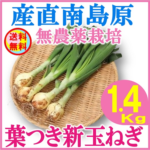 【送料無料】産直南島原の無農薬栽培葉つき新玉ねぎ1.4Kg