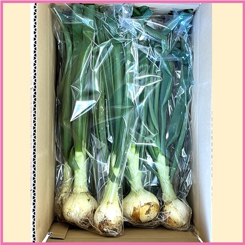 長崎県の産直南島原で無農薬栽培された、葉つき新玉ねぎです。新玉ねぎが大きくなる前に若採りしたもので、葉をつけたままお届けします。