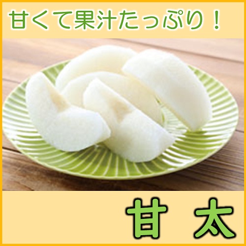 「甘太」は、王秋とあきづきの交配品種で、甘みは強いのですが適度な酸味があるので濃厚なのにさっぱりとした後味を楽しめます。果肉はやわらかめでシャキシャキしていて果汁も多くジューシーです。甘太という名前は、名前のとおり甘みが強いことと、実が大きくなる「太い」特徴などからつけられたそうです。まだ栽培されている量が少なく、めずらしい品種です。梨好きの方に、おすすめです!