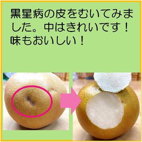 ごらんのとおり、表面は黒い斑点があり少し凹んでいますが、皮をむけばきれいで、おいしくいただけます。