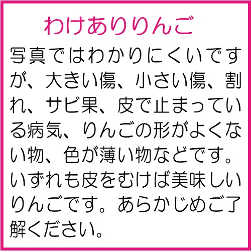 異常気象や害虫被害など厳しい環境の中で懸命に栽培を続ける生産者を応援するため、少し深めに切ったり一部を切ればおいしくいただけるりんごです。あらかじめご了解ください。