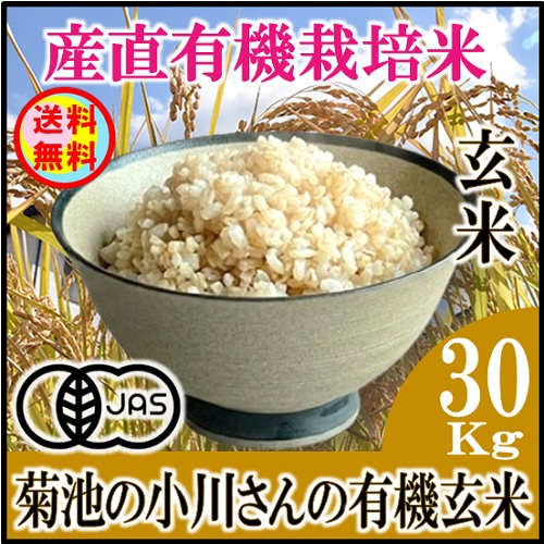 【送料無料】菊池の小川さんの有機栽培ヒノヒカリ玄米30Kg