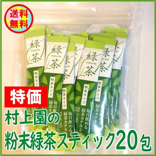 【送料無料】村上園 特価有機粉末緑茶スティック(20包)