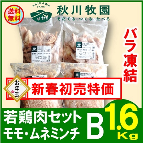 【送料無料】秋川牧園若鶏肉セットB(モモ・ムネミンチ)1.6Kg
