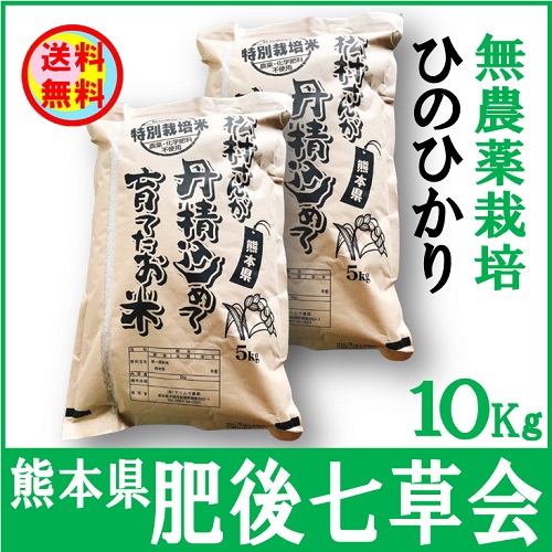【送料無料】肥後七草会 無農薬栽培ひのひかり10Kg