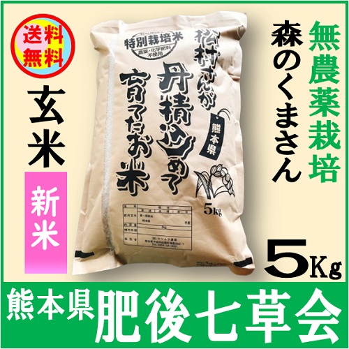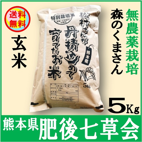 【送料無料】肥後七草会 無農薬栽培玄米森のくまさん5Kg