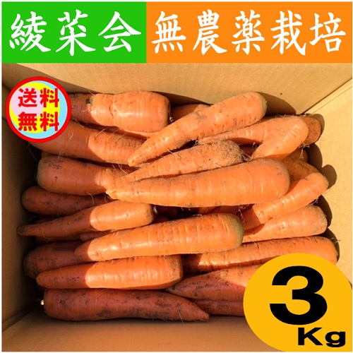 【送料無料】宮崎県綾町 綾菜会の無農薬栽培人参3Kg