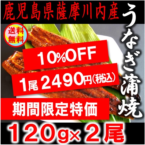 【送料無料】薩摩川内産うなぎ蒲焼120g×2尾