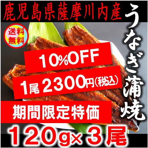 【送料無料】薩摩川内産うなぎ蒲焼120g×3尾