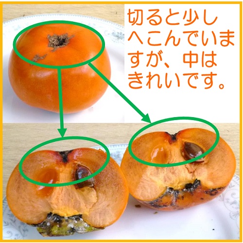 福岡県の小ノ上果樹園で、できるだけ農薬を使わず栽培した、富有柿です。果面に大きな傷や汚れ等があるものですが、皮をむいていただければ、おいしさに変わりはありません。