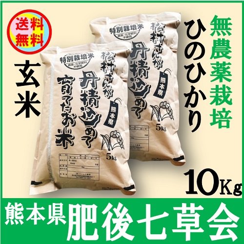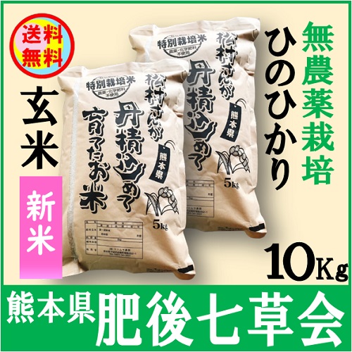【送料無料】肥後七草会 無農薬栽培玄米ひのひかり10Kg