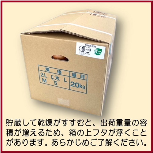 ※貯蔵して乾燥がすすむと、出荷重量の容積が増えるため、お届けする箱の上フタが浮くことがあります。あらかじめご了解ください。