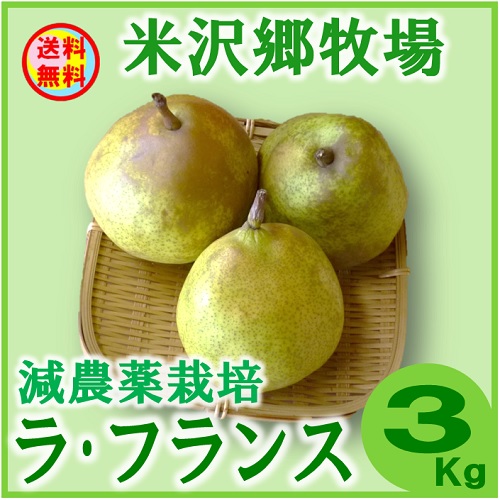 【送料無料】米沢郷牧場の減農薬栽培 ラ・フランス3Kg