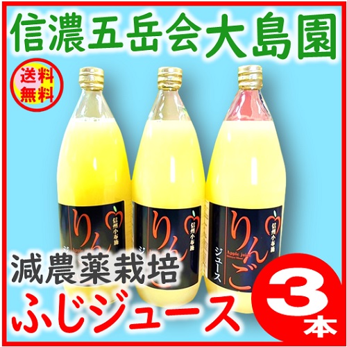 【送料無料】信濃五岳会大島園 減農薬ふじりんごジュース3本