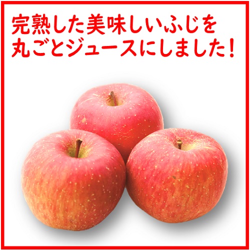 ジュースにしているりんごの品種はふじ。ふじは生産量№1でダントツ人気のりんごです。甘みと・酸味・歯ごたえの三拍子そろった美味しいりんごです。袋をかけないで太陽の光を一杯あびて育ったサンふじです。食べる時には甘みと酸味のバランスがとれて、食感もいいですが、まるごとジュースにすると、とても濃厚な甘さを感じられます。