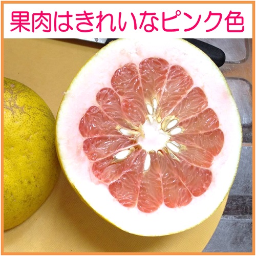 チャンドラはインド神話に登場する月の神。ポメロは文旦(ザボン)。つまり「月の神の文旦」という意味です。1玉が直径15~20cmほど大きくなる大型品種で、皮が厚く、果肉は鮮やかなピンク色をしています。