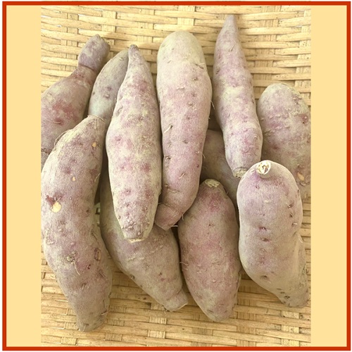 宮崎紅は宮崎県のオリジナルブランド。赤紫色の表皮とクリーム色の果肉で、表面にうっすら筋がでることがあります。加熱するとホクホクした食感で、なつかしい素朴な甘さが特徴で、誰からも好まれやすい美味しさです。「ホクホク系のさつま芋」好きの方には特におすすめです!