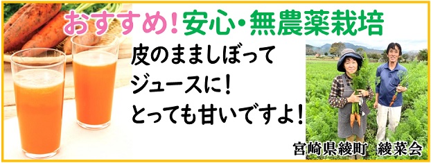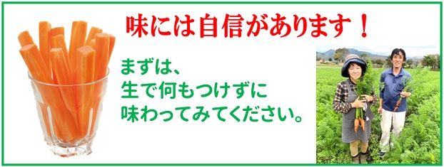 堆肥と有機質肥料だけを使用し、人参が本来持っている栄養、香り、味をもった人参つくりに頑張っていますので、安心して皮ごとお召しあがりください。