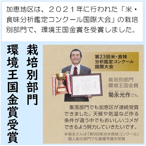 ※ 平成30年産菊池市の米食味コンクール、最優秀賞受賞(栗原弘陽、加恵の米生産者)