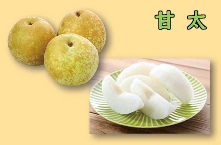 甘太は、王秋とあきづきの交配品種で、甘みは強いのですが適度な酸味があるので濃厚なのにさっぱりとした後味を楽しめます。果肉はやわらかめでシャキシャキしていて果汁も多くジューシーです。甘太という名前は、名前のとおり甘みが強いことと、実が大きくなる「太い」特徴などからつけられたそうです。まだ栽培されている量が少なく、めずらしい品種です。梨好きの方に、おすすめです!