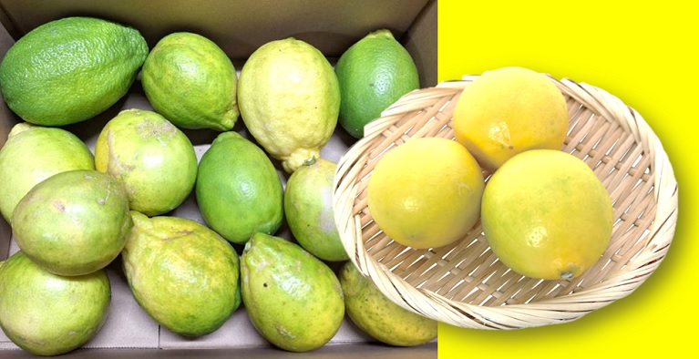 国産のレモンは産地や栽培方法にもよりますが、だいたい10月~翌年の6月くらいまで出荷されています。特徴的なのは皮の色で、10月は皮がきれいな緑色でグリーンレモンと呼ばれています。日を追い気温が下がって来るとレモンイエローに色づいていきます。