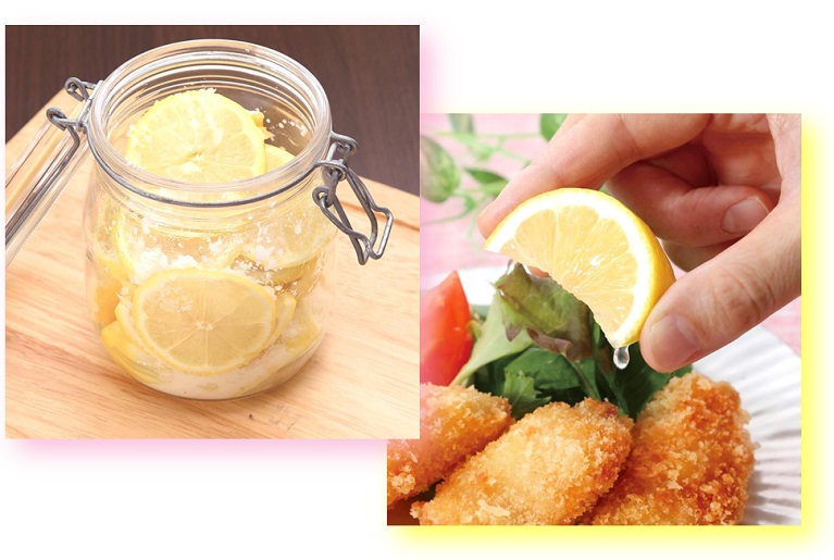 レモンには、ビタミンCの他、疲労回復に役立つクエン酸や抗酸化作用が期待できるポリフェノールも含まれています。唐揚げや塩レモン、はちみつ漬けの他、レモンサワーにもおすすめです。