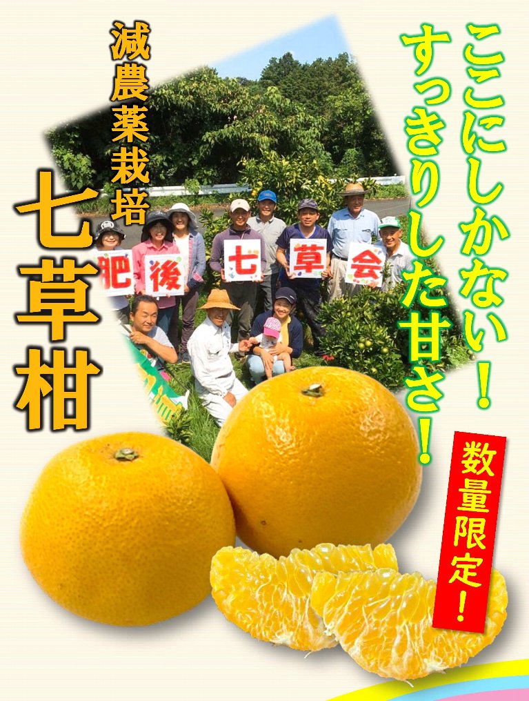 とても美味しい柑橘ですが、品種がわかりませんので、肥後七草会独自のみかんとして「七草柑」(ななくさかん)という名前で取り扱うことにしました。
