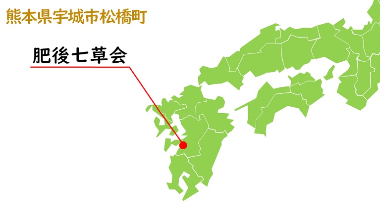 私たち肥後七草会は、熊本市から南へ車で約40分、熊本県の中央部宇城市を中心とした、海と山に囲まれた、温暖で自然豊かな環境の中にあります。1990年(平成2年)に7名で発足し、現在の生産者は25名です。