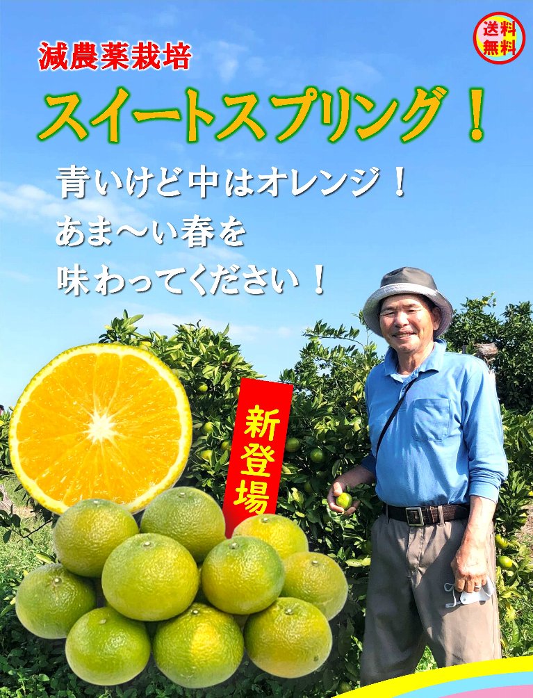 スイートスプリングは、みかん(上田温州)とはっさくを掛け合わせたかんきつです。