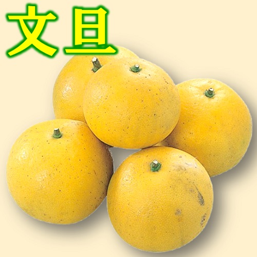 文旦は爽やかで上品な香りがする、黄色く皮が厚く大きなかんきつです。透き通ったプリプリの果肉は口の中で弾けるような食感が楽しめます。甘みと酸味のバランスが絶妙で、後味には文旦特有の心地よい苦みがあります。外皮が厚いため包丁やナイフで上と下を切り落し、皮に切れ目を入れてむくのがおすすめです。小袋を開いて果肉を取り出していただきます。外皮は苦みが少ないので砂糖で煮詰めて「ピール」にするのもおすすめです。 |